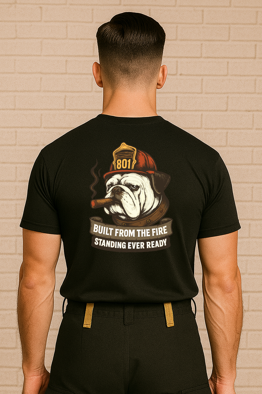 Text “Built from the fire  Standing ever ready”